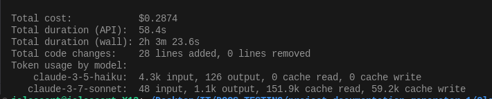 claude < prompt.mdTotal cost: $3.22 Total duration (API): 52m 3.2s Total duration (wall): 6h 53m 43.5s Total code changes: 4351 lines added, 0 lines removed Token usage by model: claude-3-5-haiku: 70.0k input, 117.8k output, 0 cache read, 0 cache write claude-3-7-sonnet: 123 input, 40.6k output, 3.1m cache read, 304.1k cache write